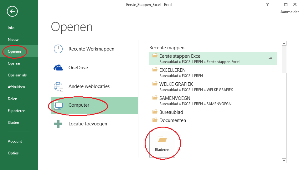 - Locatie op de computer – Bureaublad – EXCELLEREN – Eerste stappen Excel